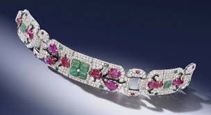 They were also responsible for creating the colourful ‘tutti frutti’ jewels that are synonymous with this period. Jacques Cartier returned from visits to India with large quantities of rubies, emeralds and sapphires all carved in the traditional Moghul fashion into a variety of flowers and leaves. These were then combined with diamonds and set into platinum to make bright, vivacious jewels such as bracelets and brooches.