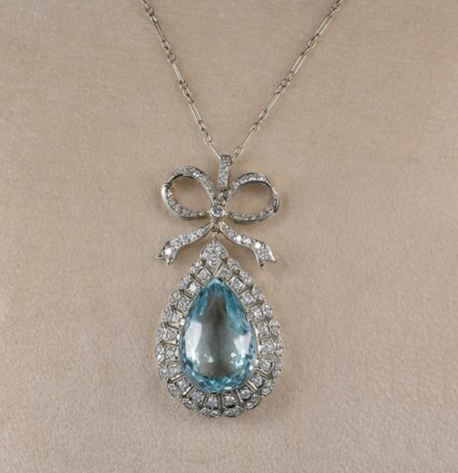 The reign of King Edward VII, which defines this brief nine year period, was a time of relative peace and prosperity. Finely pierced, open, lacy designs that looked almost cobweb like in comparison to 19th Century jewels were now possible and it isn’t an exaggeration to say that the use of this metal in fine jewellery revolutionised its design.  Baroque, Rococo and Neo-Classical influences all combine in what is referred to as the Garland Style with its dis tinctive swags, curls, wreathes and drops fashioned from leaves, ribbons and floral motifs.