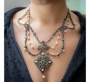 The prolific use of multi coloured enamels fell out of style, partly due to an increased availability of a much wider range of gemstones. These were used to ‘colour’ jewellery without the dependence on enamels and were used effectively in all manner of jewels such as the popular giardinetti (little garden) brooches and rings that consisted of coloured gem flowers with emerald leaves in little pots or vases.