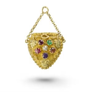 They also facilitated the fashion for acrostic jewellery where the initial of each gemstone would spell out a word, typically a name or sentiment such as ‘dearest’ or ‘regard’ which would have been made up with a ruby, emerald, garnet, amethyst, ruby and diamond.