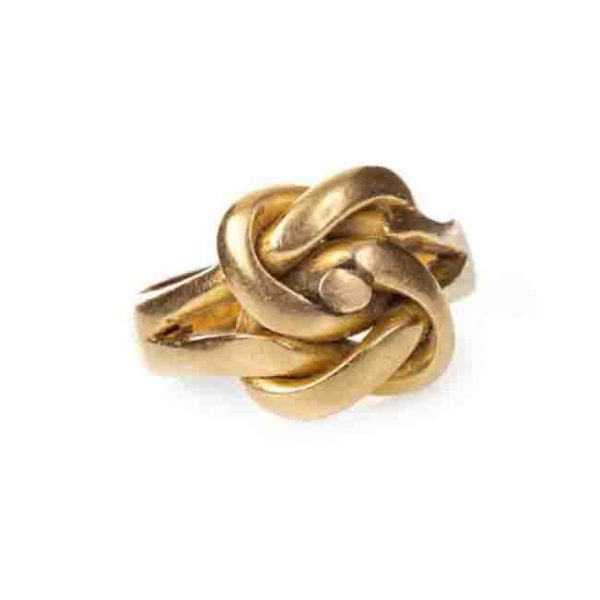 Knot ring, the knot as a symbol on rings has used by both Eastern and western societies for many years. It was key motif of the Celts and widely used by Buddhists representing, friendship eternity , loyalty and love. Gold Knot rings became very popular in the early 20th C and were worn by both men and women.