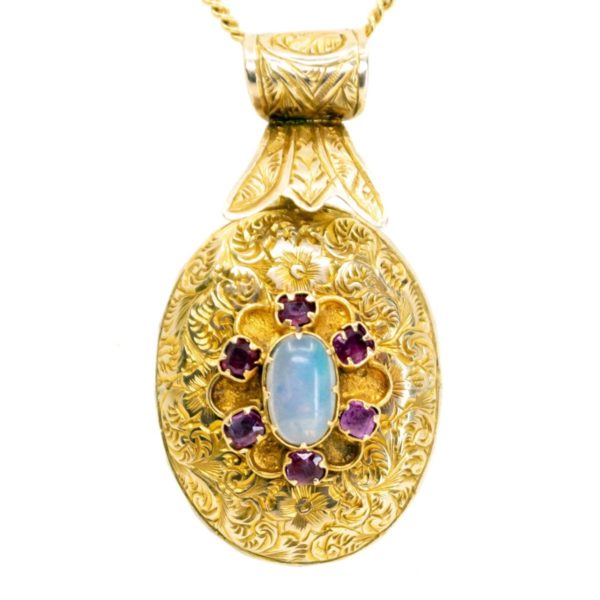 After the death of Prince Albert, the country was plunged into mourning and the country were expected to wear muted coloured clothing to show their respect. Wearing a bold, gem set locket became a way of livening up an outfit.