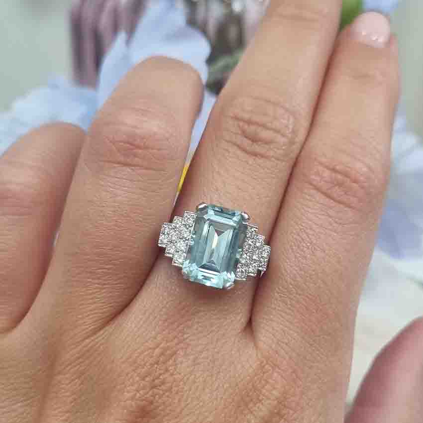 3.75ct Aquamarine Ring with Stepped Diamond Shoulders