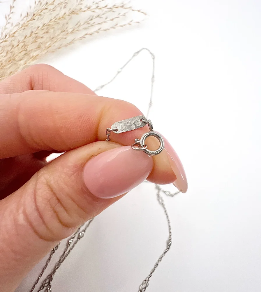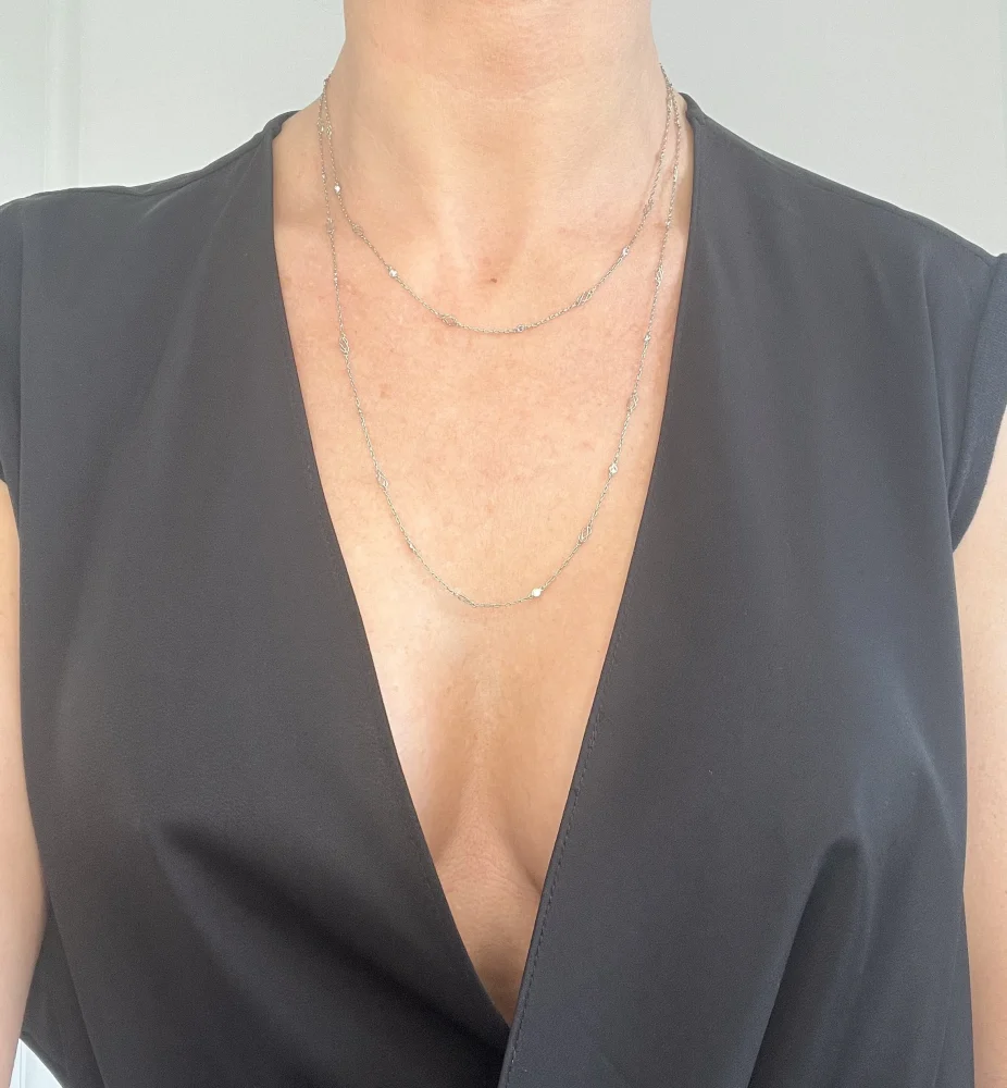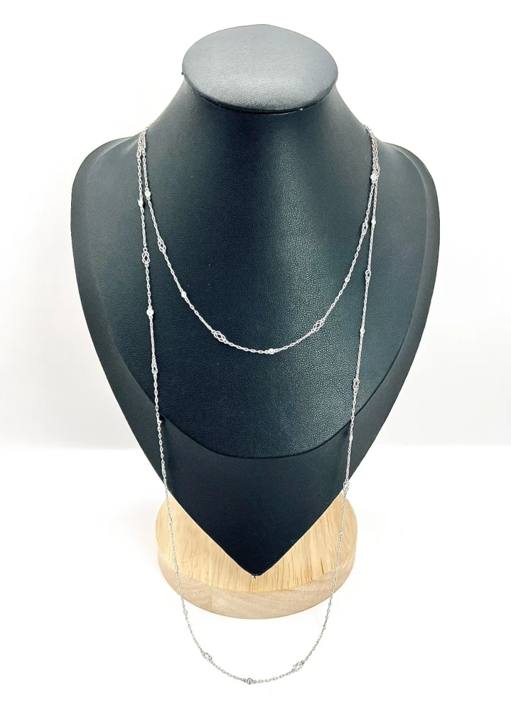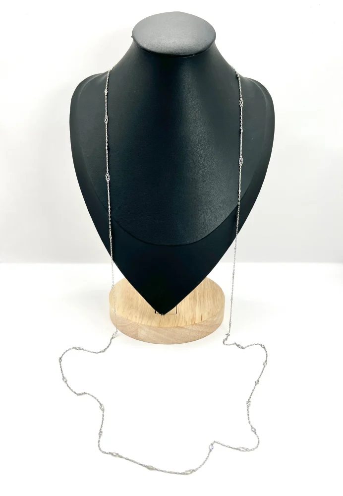 Step back in time to the elegant 1920’s with this exquisite platinum half guard trace chain and lovers knot link chain with a bolt ring clasp,