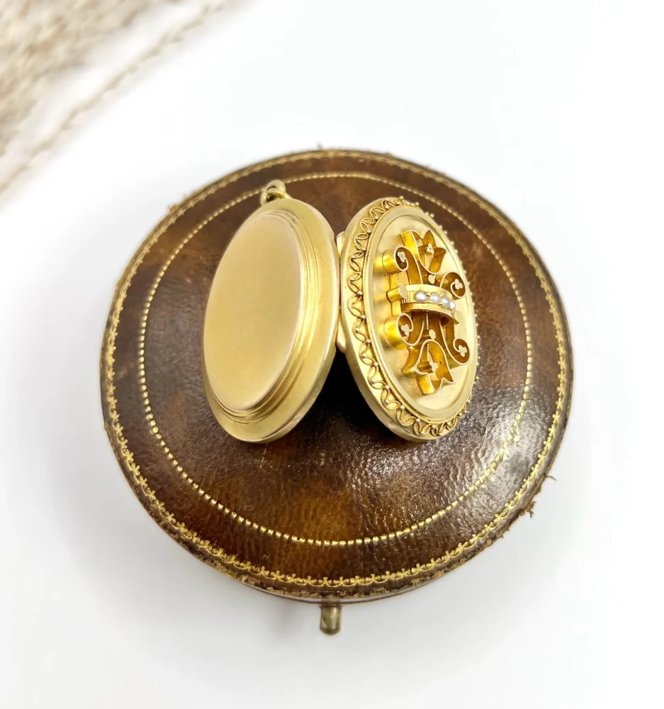 Victorian Fancy Locket With Seed Pearls In 15 Carat Yellow Gold