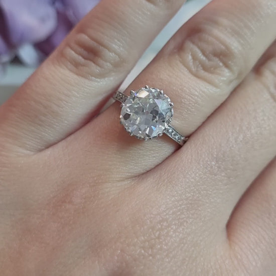 Antique 3.15ct Old Mine Cut Diamond Solitaire Engagement Ring