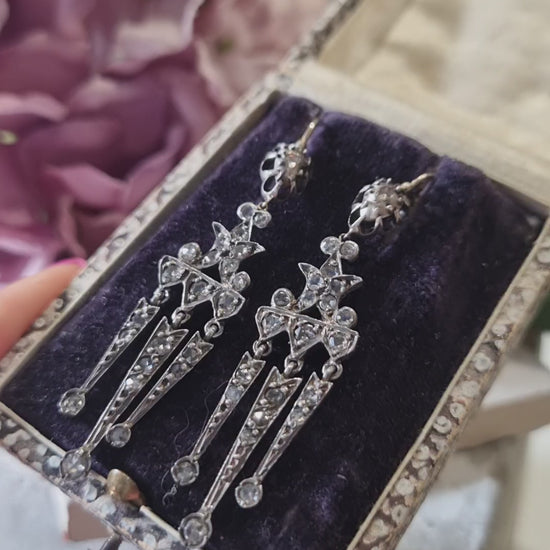 Antique Rose Cut Diamond Girandole Drop Earrings