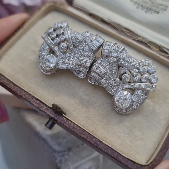 Antique Vintage Art Deco Old Cut Diamond Double Clip Brooch