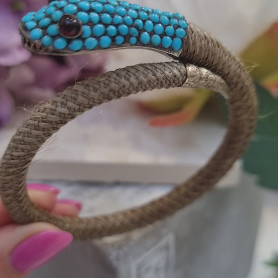 Georgian Antique Turquoise Set Woven Snake Bracelet