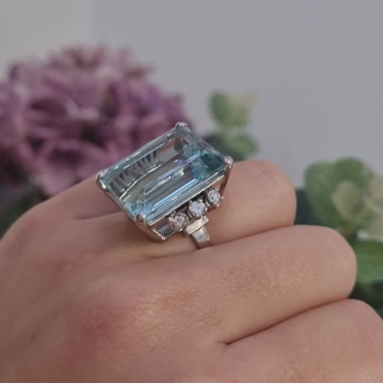 Vintage 20cts Aquamarine and Diamond Cocktail Ring, Circa 1950s