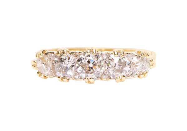 Five stone rings, a single line of gems usually graduating in size, the design became popular in the Victorian era as precious gems became more widely available. Settings have evolved since the 19thCentury and remain hugely popular due to their wear-ability today.
